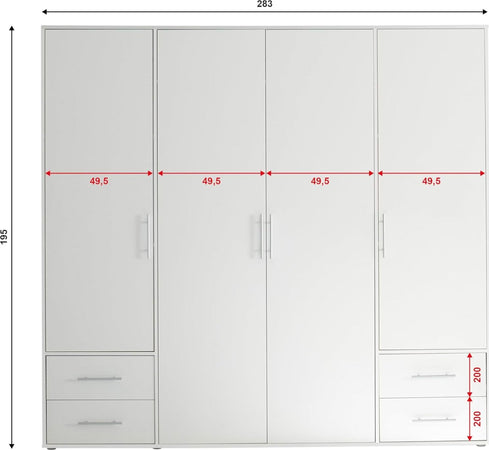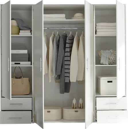 armadio moderno per camera da letto 4 ante battenti 4 cassetti in legno bianco 77Y2651,240F55