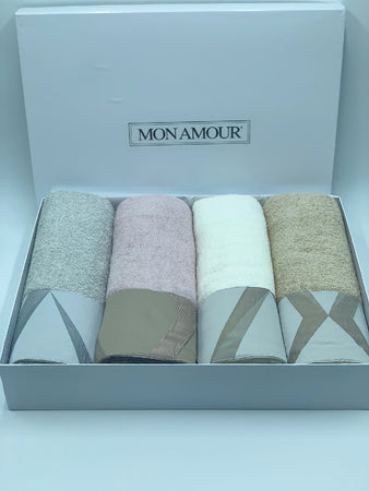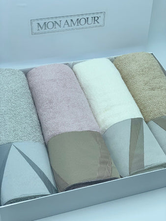 Asciugamani 4+4 art.Elettra Mon Amour La confezione comprende 4 Asciugamani viso e 4 ospiti