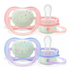 Il succhietto ultra air è progettato per essere leggero e confortevole, compresa la tettarella vellutata. La tettarella simmetrica rispetta la forma naturale del palato, dei denti e delle gengive.
