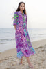 Stravagante abito lungo chemisier di AYFEE con una dinamica fantasia “palms mix and match” che cattura lo sguardo con un mix audace di colori e motivi tropicali. Realizzato in 100% cotone indiano, questo abito offre una sensazione di leggerezza e freschezza ideale per le serate miti. Presenta un classico colletto e una chiusura frontale con bottoni. Le maniche a 3/4 aggiungono un tocco di eleganza e versatilità. La lunghezza lo rende perfetto per una cena speciale o un evento serale. Un capo che unisce un design audace alla comodità del cotone, perfetto per esprimere una personalità vibrante e alla moda.