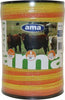 Banda per recinti elettrici gialla e arancione in fibra d'acciaio. Ha una lunghezza di 200 m, larghezza di 20 mm e resistenza massima di 90 kg. Nella banda sono presenti 4 conduttori d'acciaio di diametro 0,16 mm. Adatta per mucche, cavalli, maiali, pecore e cervi.