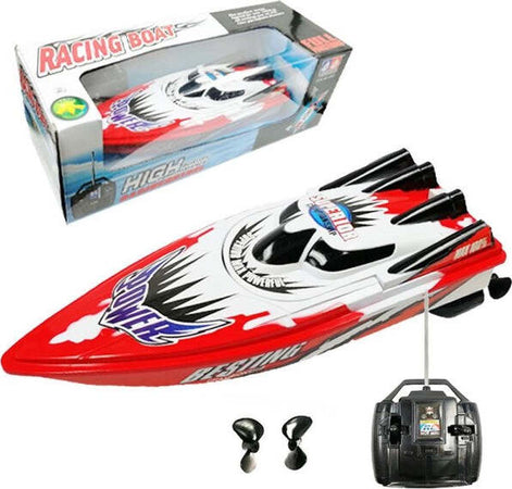 Distanza di controllo remoto di 30 metri per un vero divertimento all'aria aperta Due eliche di ricambio incluse L'apparenza di dipingere bella, squisita fattura Lato dell'alta corrente, riducendo la resistenza all'acqua, migliora efficacemente la velocità Due potenti motori elettrici, tecnologia di raffreddamento ad acqua