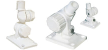 Base a doppio snodo, in nylon rinforzato e resistente ai raggi UV con bloccaggio a manopola per evitare possibili intralci nelle manovre.