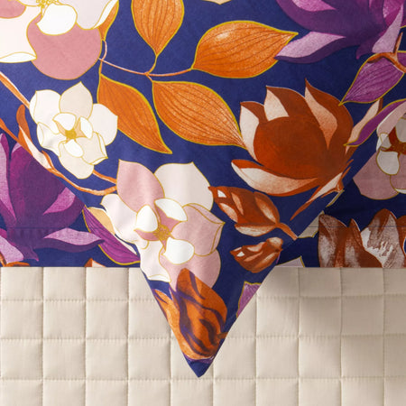 Completo Lenzuola Matrimoniale Garden Flowers di Bassetti in puro cotone, decorato con magnolie e camelie.