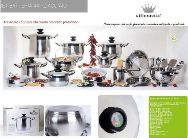 Batteria Pentole Bavaria Ottingher Linea Silhouette 44 Pezzi Acciaio Inox 18/10 Lucidato A Specchio A Triplo Fondo