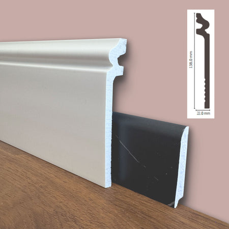 Battiscopa COPRIMARMO DUCALE in POLIMERI linea BASICBOARD 138x22mm - BIANCO pitturabile (prezzo al metro)