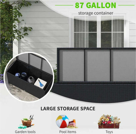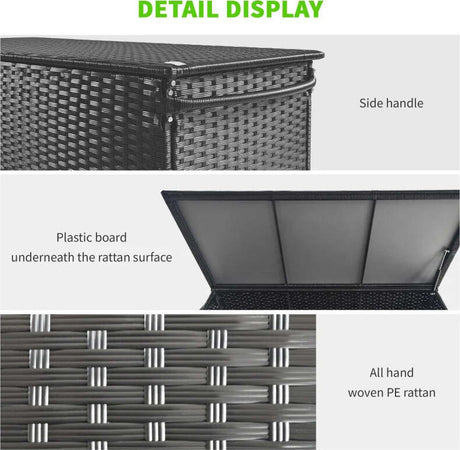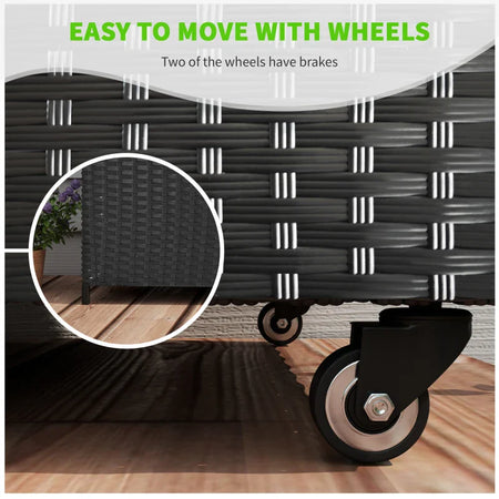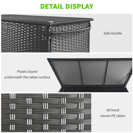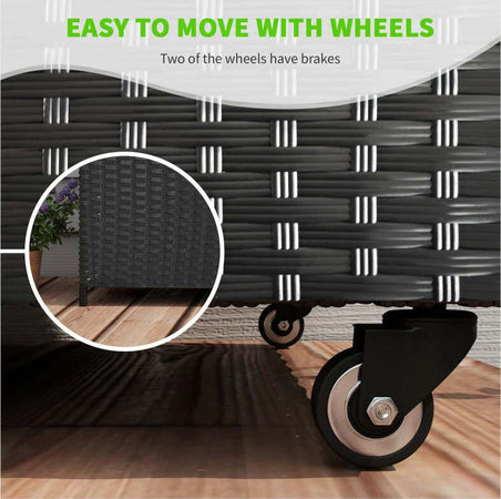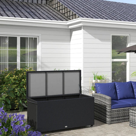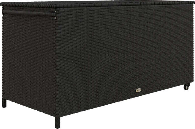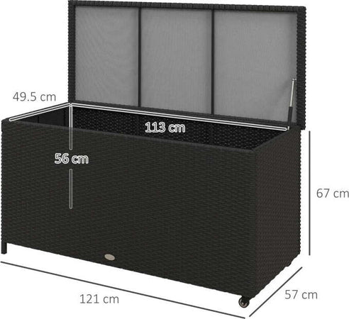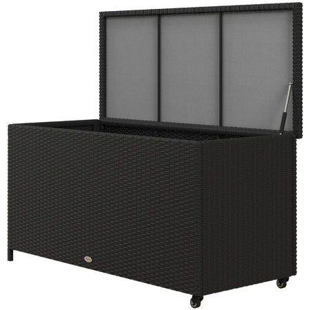 Baule da Giardino in Rattan PE con Ruote e Maniglia Laterale, 121x57x67cm, Nero 865-016V00BK