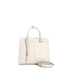 Bauletto in materiale con grana, manico con applicazione di lettering , tracoll
