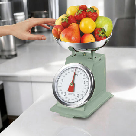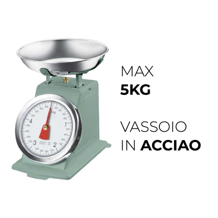 Bilancia da Cucina in metallo Shabby Verde Max 5 Kg Analogica Vassoio in Acciaio