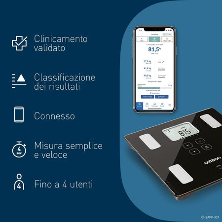 Bilancia OMRON VIVA Bluetooth Smart per la composizione corporea metabolismo BMI