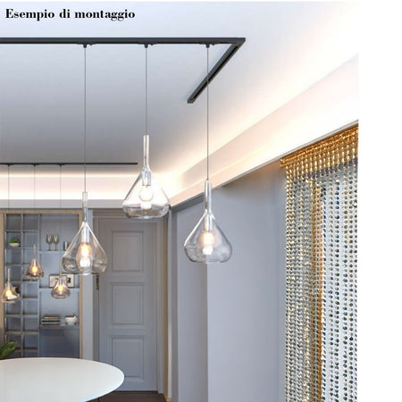 Binario Top Light MONO 1184 ECLIPSE BF-AM BIANCO G9 LED lampada soffitto moderna sfera vetro bianco ambra