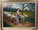 Biscottini Dipinto a mano olio su tela con cornice in legno finitura foglia oro