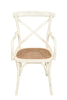 Poltrona con braccioli larghezza 50 cm, profondità 43 cm, altezza 89 cm in stile Thonet realizzata in massello di frassino con schienale incrociato e seduta in paglia di Vienna lavorata a mano. Grazie al suo design da bistrot è ideale per arredare in stile vintage qualsiasi ambiente o locale, senza rinunciare alla comodità.