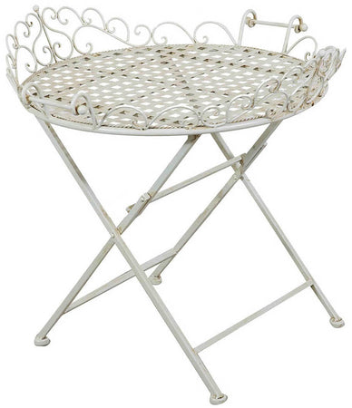 Biscottini Tavolino vassoio pieghevole in ferro battuto finitura bianca anticata diam.72x65 cm