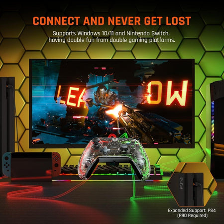 Controller Cablato, Controller compatibile con PC Rainbow Lite per Giochi 2 Pulsanti Posteriori, Turbo, Dual Shock, Controller RGB compatibile con Switch/Windows Controller compatibile con PS4 con adattatore R90