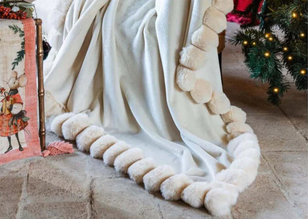Blanc Mariclò Plaid con Pom Poms 140×170cm A38551 2510S36