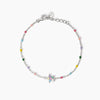 Bracciale regolabile in argento rodiato con catena rolò con stella in zirconi e tormalina rosa sintetica e inserti smaltati multicolor.