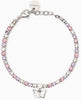 Bracciale tennis in acciaio 316L con cristalli multicolor Ø 3 mm, ciondolo farfalla 9.5x6.5 mm e cristallo Ø 1.5 mm, lunghezza regolabile da 15.5 a 18 cm