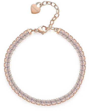 Bracciale da donna di Brosway della collezione desideri. Bracciale desideri in acciaio 304, finitura oro rosa e zirconi quadrati rosa. Lunghezza: 175 mm. Peso: 5 g.