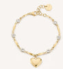Bracciale semirigido in acciaio 316L e finitura pvd oro 14K, con pendente a forma di cuore e cristalli.