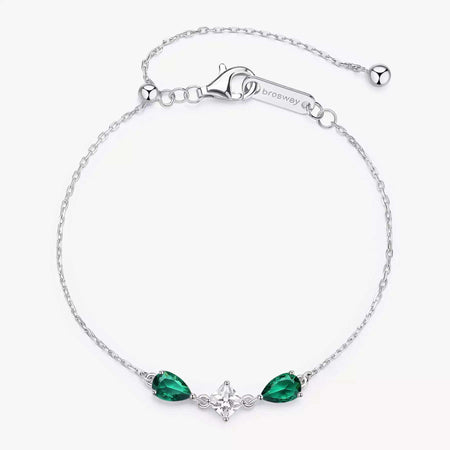 Bracciale tiralaccio in argento rodiato 925‰ con square cubic zirconia e pear cubic zirconia colore emerald.