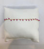 Bracciale in oro giallo 18 k Cameli, con pietrine pendenti fucsia, peso 1,9 g, lunghezza 17 cm, estendibile a 19 cm con chiusura a moschettone.
