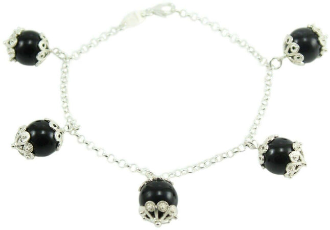 Su Coccu bracciale artigianato sardo 5 sfere onice e argento 925 Gioiello Sardegna