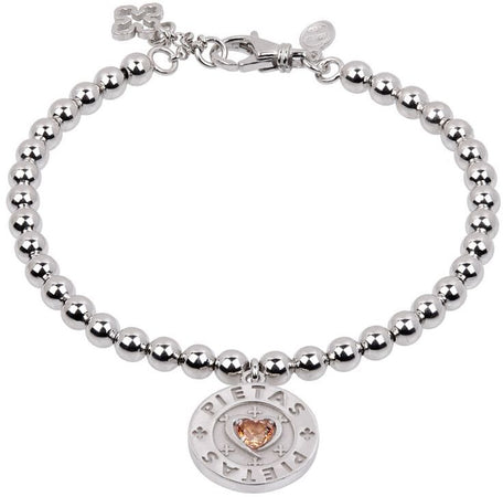 Bracciale Dono "Pietas" in argento rodiato 925 con grani argento e topazio pesca.
