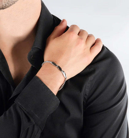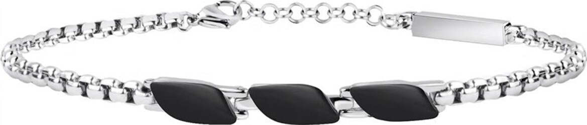 Bracciale MASERATI da uomo collezione 'Signature' realizzato in acciaio con inserto in acciaio nero. Lunghezza regolabile 19/22 cm