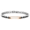 Bracciale Maserati da uomo realizzato in acciaio con inserti rose gold e cristalli neri. Lunghezza max 22 cm