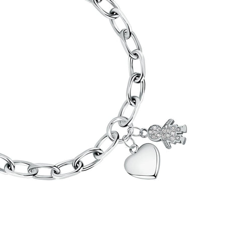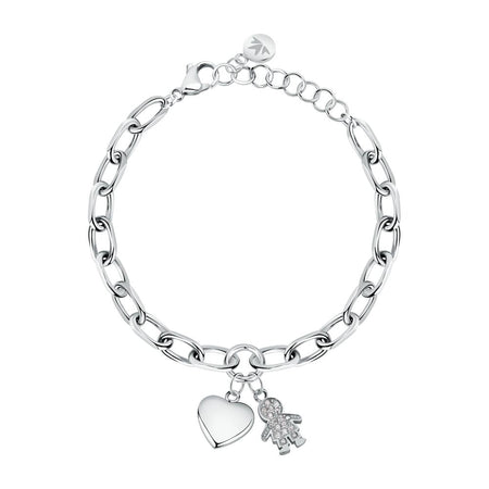 Bracciale MORELLATO da donna collezione Talismani realizzato in acciaio con pendenti cuore / bimbo. Lunghezza regolabile 16/19 cm