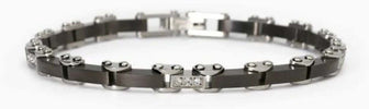 Bracciale in acciaio 316L PVD Gunmetal e cristalli bianchi Ø 1.75 mm, lunghezza regolabile da 19 a 21 cm.