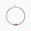 Bracciale in acciaio 316L con catena veneta 4 mm, rondella centrale smaltata 9.5xØ6.5 mm e cristalli Ø 1.75 mm, lunghezza regolabile da 19 a 21 cm, chiusura con moschettone.