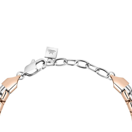 Bracciale Morellato SALS54 da uomo – Un gioiello elegante e attuale della collezione Motown. Realizzato in acciaio bicolor (tonalità argento e oro rosa), questo bracciale dal peso di 12 grammi si distingue per lo stile deciso e contemporaneo.
