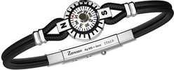 Bracciale in argento e kevlar con bussola su fondo bianco.