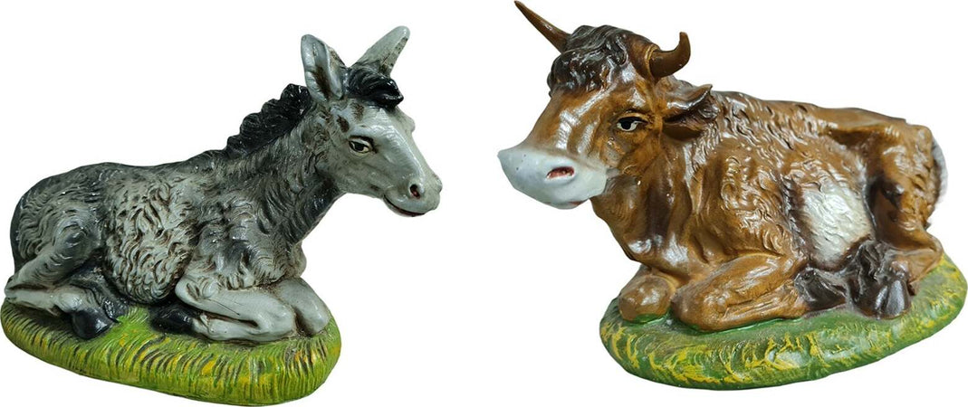 Bue ed Asinello statuette in cartapesta per presepe da h 12 x 30 cm