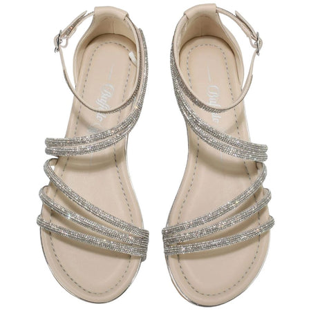 Buffalo sandalo Capri Glam Vegan 1601240. Sandalo basso vegano finta nappa con strass, cinghie asimmetriche e tallone con contrafforte che garantiscono maggiore stabilità, plantare comodo, suola interna im Memory Foam, calzata regolare. Prodotto vegano approvato PETA
