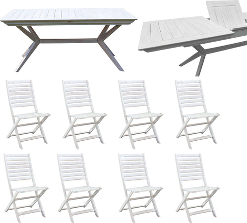 CAESAR - set tavolo da giardino allungabile 180/240x90 compreso di 8 sedie in legno massiccio di acacia Bianco Milani Home