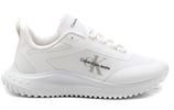 Queste sneakers bianche di Calvin Klein Jeans combinano stile sportivo e design contemporaneo. La tomaia in tessuto tecnico con rinforzi sintetici offre traspirabilita e supporto, mentre il logo “CK Calvin Klein Jeans” stampato lateralmente aggiunge un tocco distintivo e moderno. Il fondo spesso con suola dentellata garantisce aderenza e comfort, rendendole ideali sia per l’uso urbano che per il tempo libero. Il look total white le rende estremamente versatili, perfette da abbinare a jeans, leggings o outfit sporty-chic per un tocco fresco e dinamico.