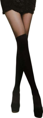 Calze Collant Donna Nere Effetto Doppio Parigine Lingerie Sopra Ginocchio