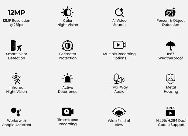 Camera PoE 12MP Bullet PRO RP-PCB12M 12MP con Visione Notturna a Colori, RP-PCB12M