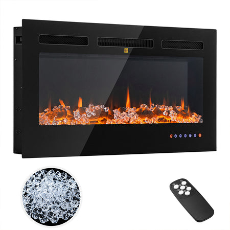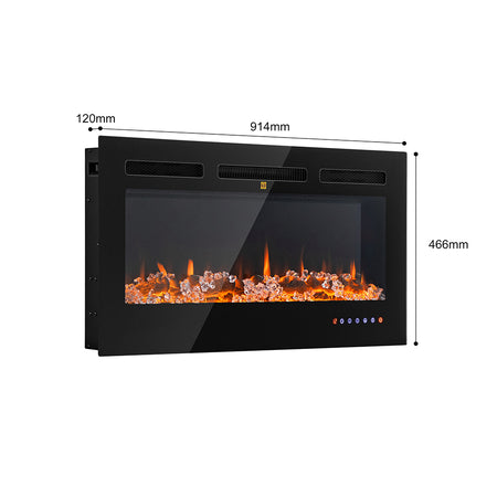 Camino Elettrico a Incasso Riscaldante Parete Fiamma Regolabile Telecomando 91cm