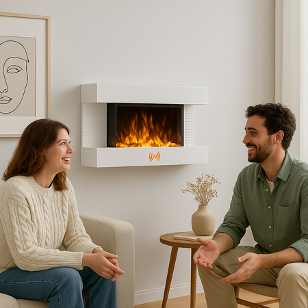 Camino Elettrico da Parete con LED Fiamma Realistica e Telecomando 2000W 82cm