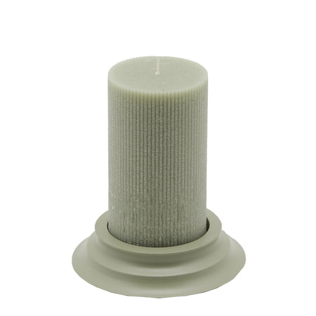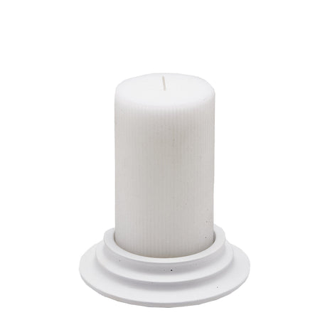 Candela cilindrica decorata cera dorica con piatto per ambienti
