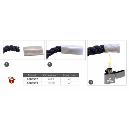 Capocorda in pvc bianco termorestringente per cime da mm. 6-13 ( art. 09.09832) e per cime da mm. 10-19 ( art. 09.09833 ) conf. da 10 pz. lung. mm.40
