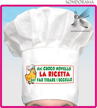 Cappello Bianco Da Cuoco Con Scritta “Dal Cuoco Novello La Ricetta Per Far Tirare L’uccello”
