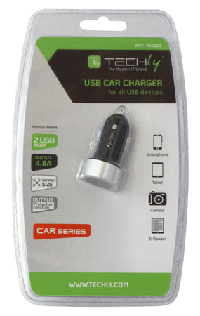 Caricatore da Auto Universale 2 Porte USB con Uscita 4,8A Nero