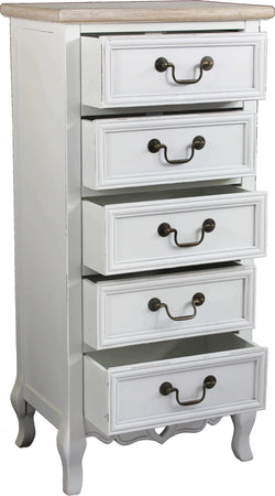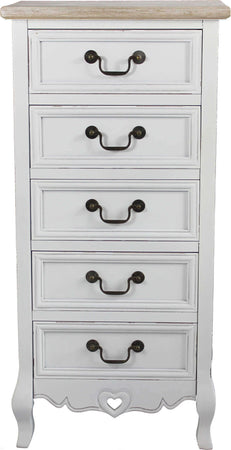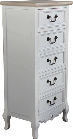 CARINE - cassettiera 5 cassetti in legno di paulownia shabby chic 44x29x91 Bianco Milani Home