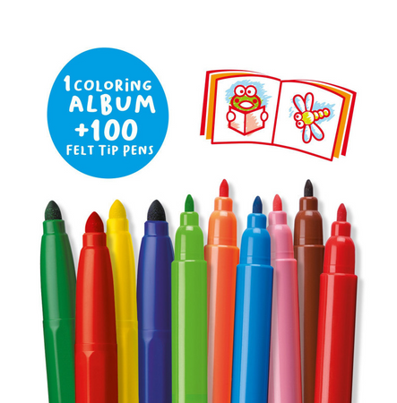 • Scatola in latta CARIOCA® con:• 100 Pennarelli punta fine e inchiostro superlavabile• 1 Album da colorare• Dedicata ai piccoli artisti, che non vogliono mai rimanere a corto di pennarelli e di idee