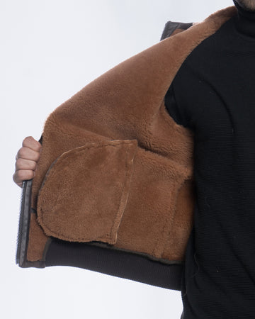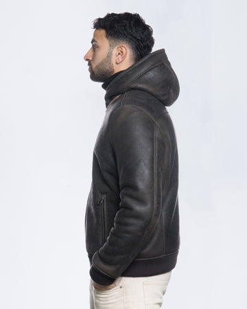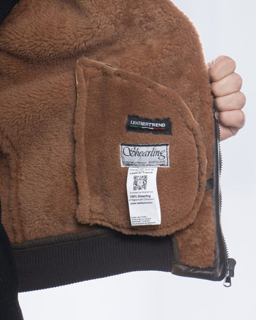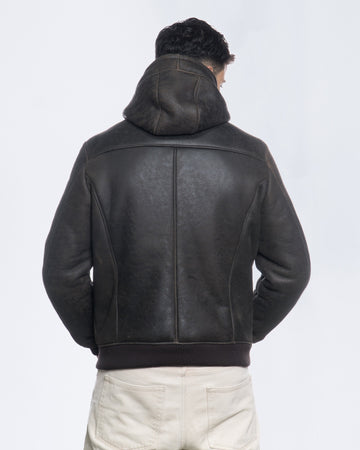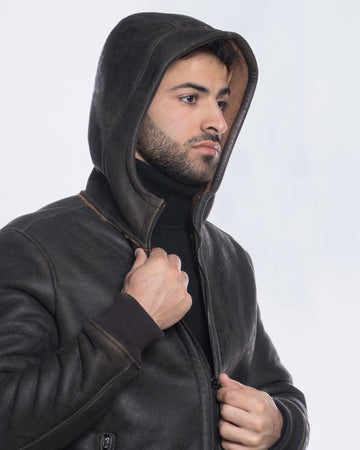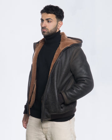Carlo - Bomber Uomo in Shearling Testa di Moro con Cappuccio